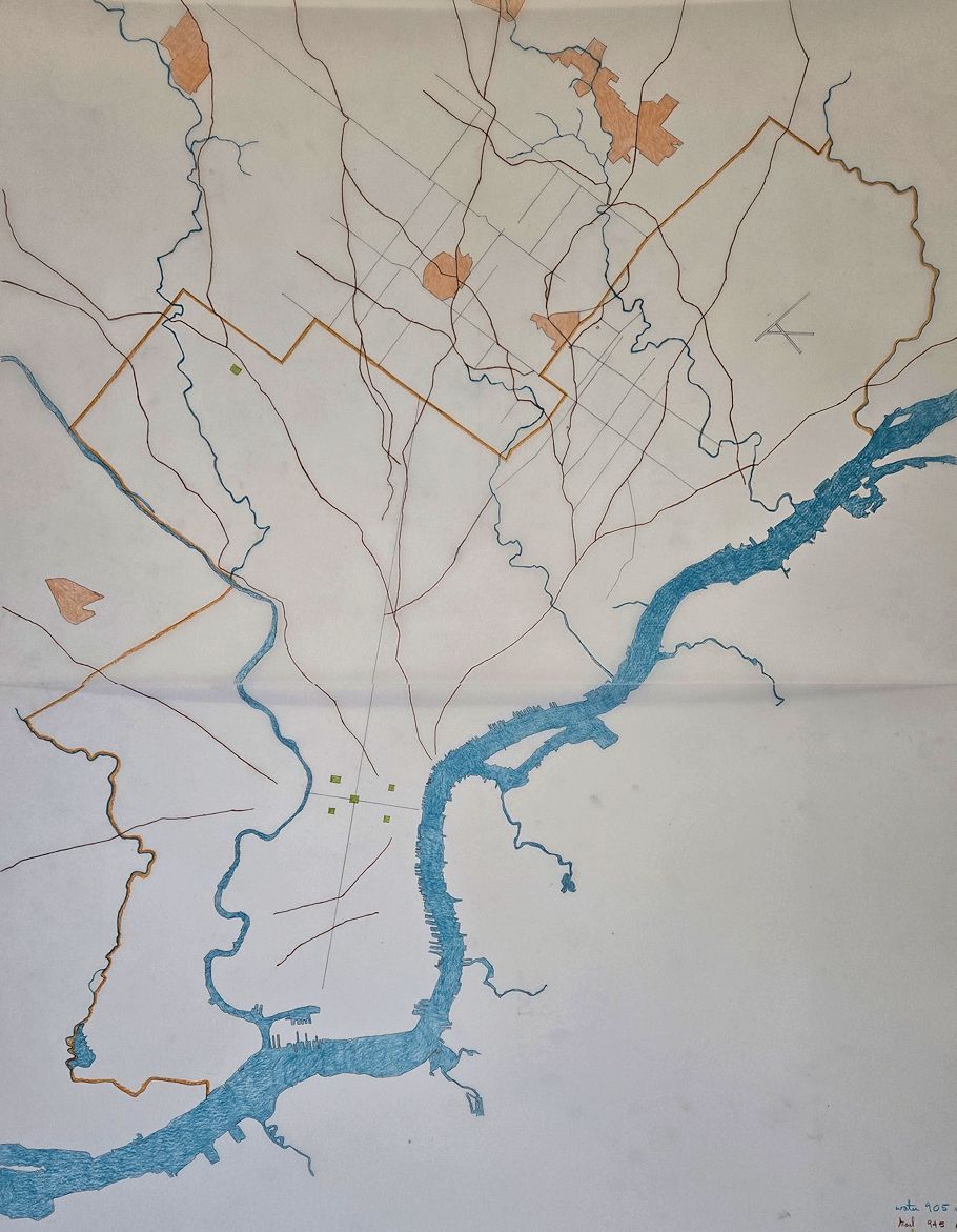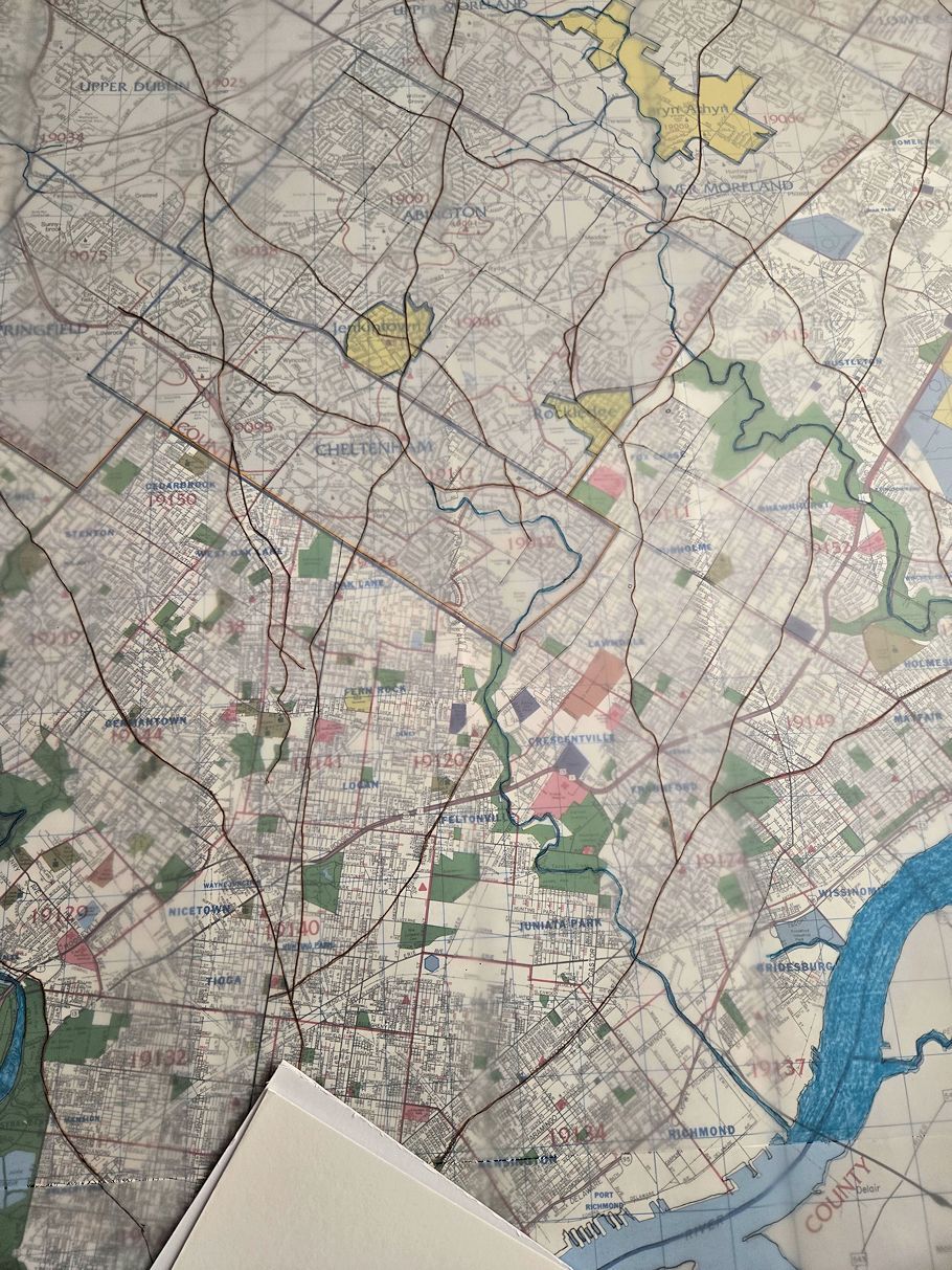 This map of Lenni Lenape infrastructure that is still in use throughout Philadelphia and beyond was drawn by tracing over a 1993 edition of Patton's Philadelphia & Suburbs Street & Road Map. The Lenni Lenape infrastructure (i.e. trails) is largly discernable due to its sharp contrast to western civilization's traditional orthagonal street grid.