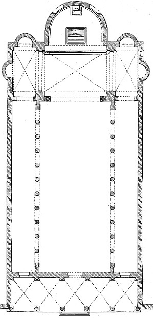 Longitudinal section of the Church of St. Peter in chains, Rome, as reconstructed on its original plan, by Adrian I; eighth century.