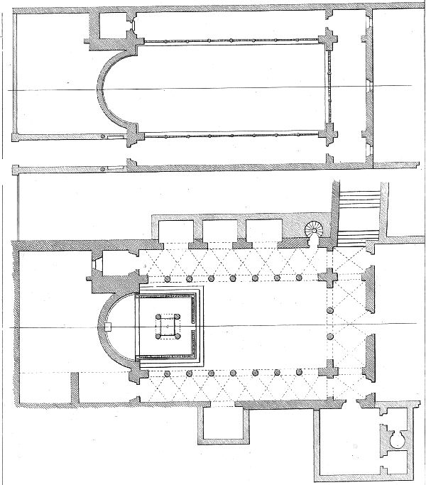 Ground plan of the Basilica of St. Agnes, with a portion of the staircase by which it is reached; fourth century.