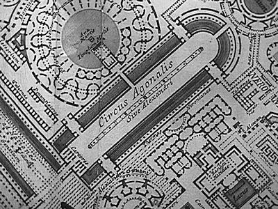 Went to UofP Fine Arts Library and successfully documented the two states of the Campo Marzio. I traced the circus redos and digitally snapped the plans, as well as the Italian dedication text.