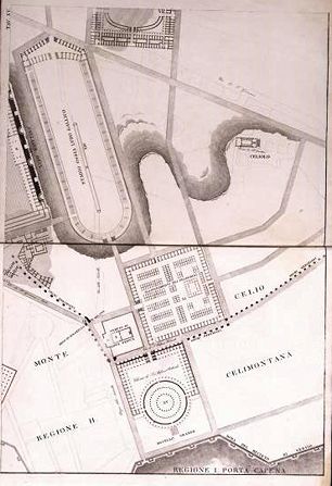 Pianta topografica della parte media di Roma antica dimostrata colla disposizione di tutti quegli edifizj antichi di cui rimangono reliquie e delineata sulla proporzione di uno a mille dall'architetto Luigi Canina 1840