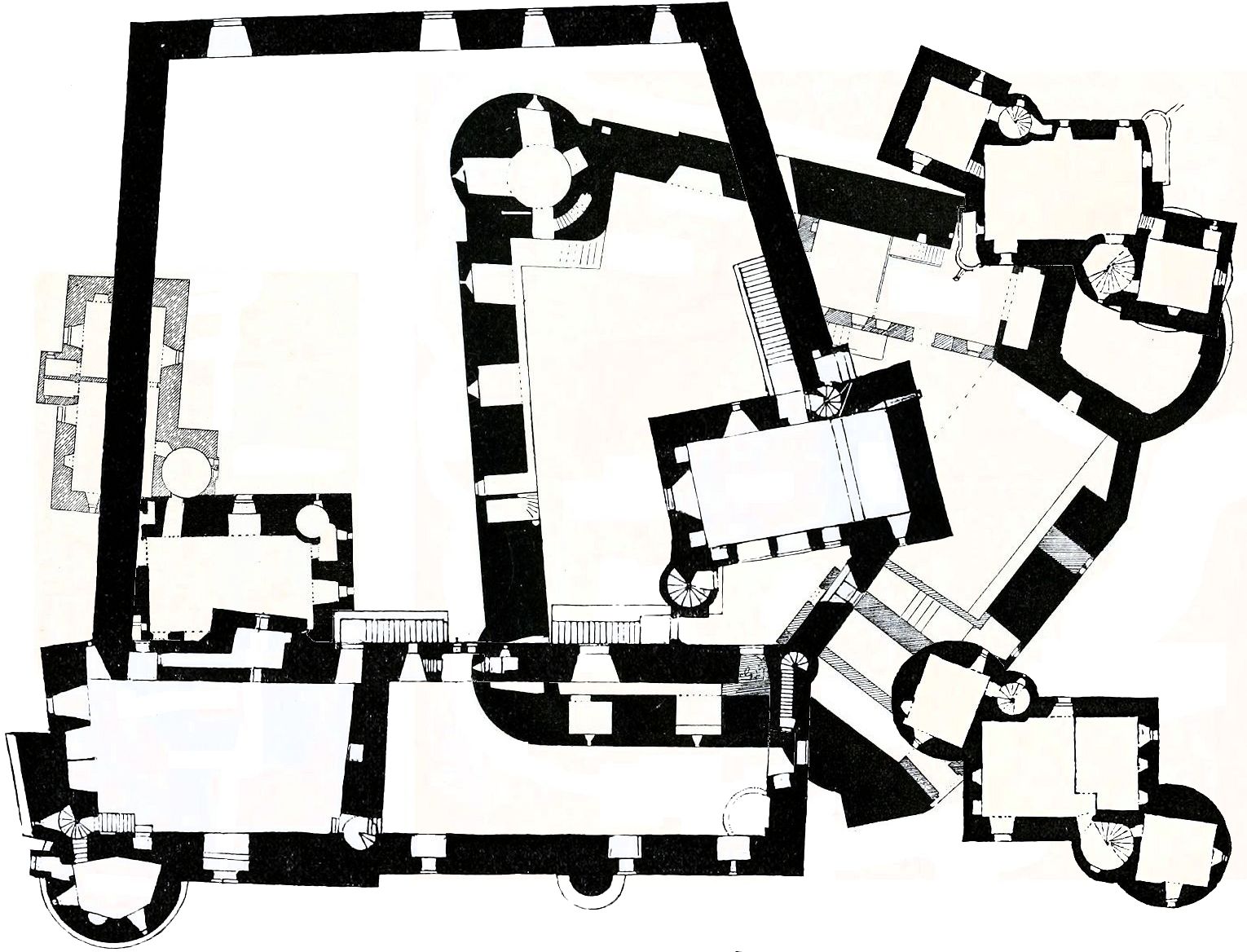 Doune Castle Claypotts Castle Campbell Dunstaffnage Castle superimposed