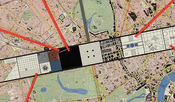 Suddenly, a strip of intense metropolitan desirability runs through the center of London. This strip is like a runway, a landing strip for the new architecture of collective monuments. Two walls enclose and protect this zone to retain its integrity and to prevent any contamination of its surface by the cancerous organism that threatens to engulf it.