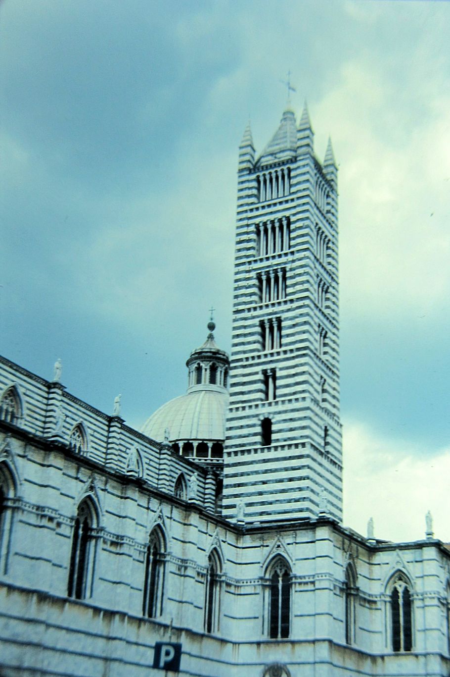 The cathedra; was amazing. Almost everything was striped horizontally--green and white. Everyone else hated it. I thought it was great just because it was done. It's wonderful to see something done horribly. One can get sick of things that are too perfect, because nothing is perfect. It's a reality because it is there, and what a teacher. A nice part was the unfinished nave. It was a lone fragment against the sky. I would have loved it last semester (Charles Moore and all that crap).