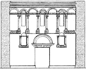 Elevation of the principal door of the Palace of Diocletian at Spaltro, called the golden door; the arcades and niches, enriched with columns and pilasters, supported by corbels; third century.