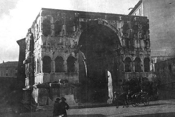 The arch was transformed into a fortress in the Middel Ages by the Frangipane family, who built a tower on top of it. When this tower was removed in the 19th century, some ancient structures went with it.