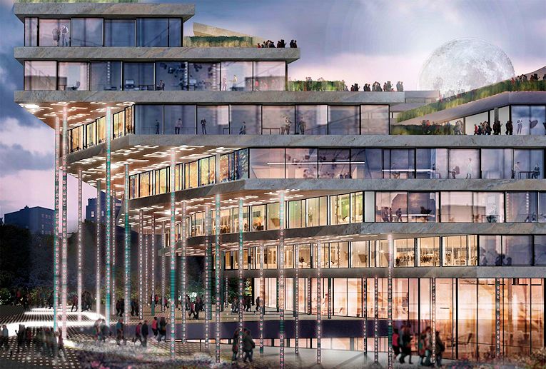 | case, copy-and-pasting Villa Savoye three times, and then allowing some changes in the size of the pilotis, leading to the stacking of three Villa Savoyes in one. |